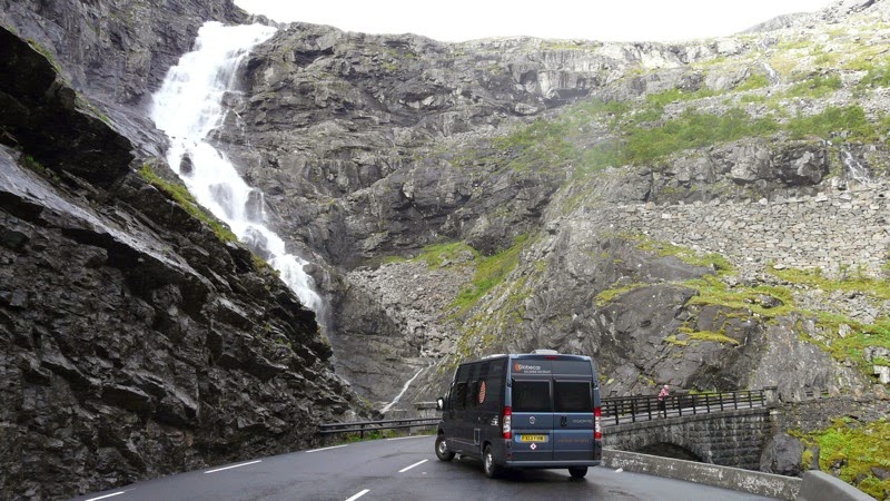 After a brief night stop by yet another ferry pier (where we caught 8 big fat mackerel !) we continued our journey into ‘Fjord Norway’ towards the ‘Trollstigen’ (Troll Ladder) which is the mountain road that climbs up over the peaks in the distance...
